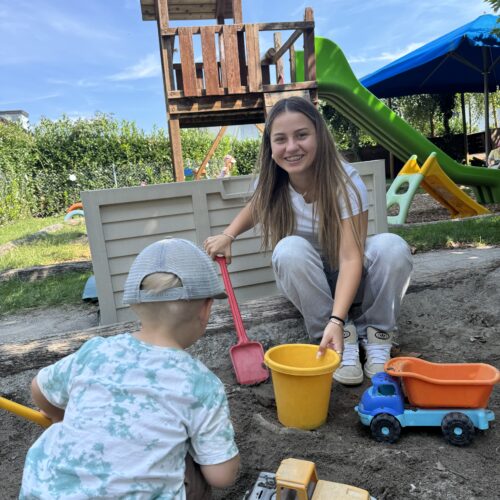 Unser Team besteht aus unserer Krippenleitung Luana, der Gruppenleitung Lisa, Miterzieherin Sarah, der Lernenden Sara und Kinscö und unserer Praktikantin Anesa.